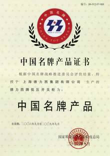 中國名牌產(chǎn)品證書
